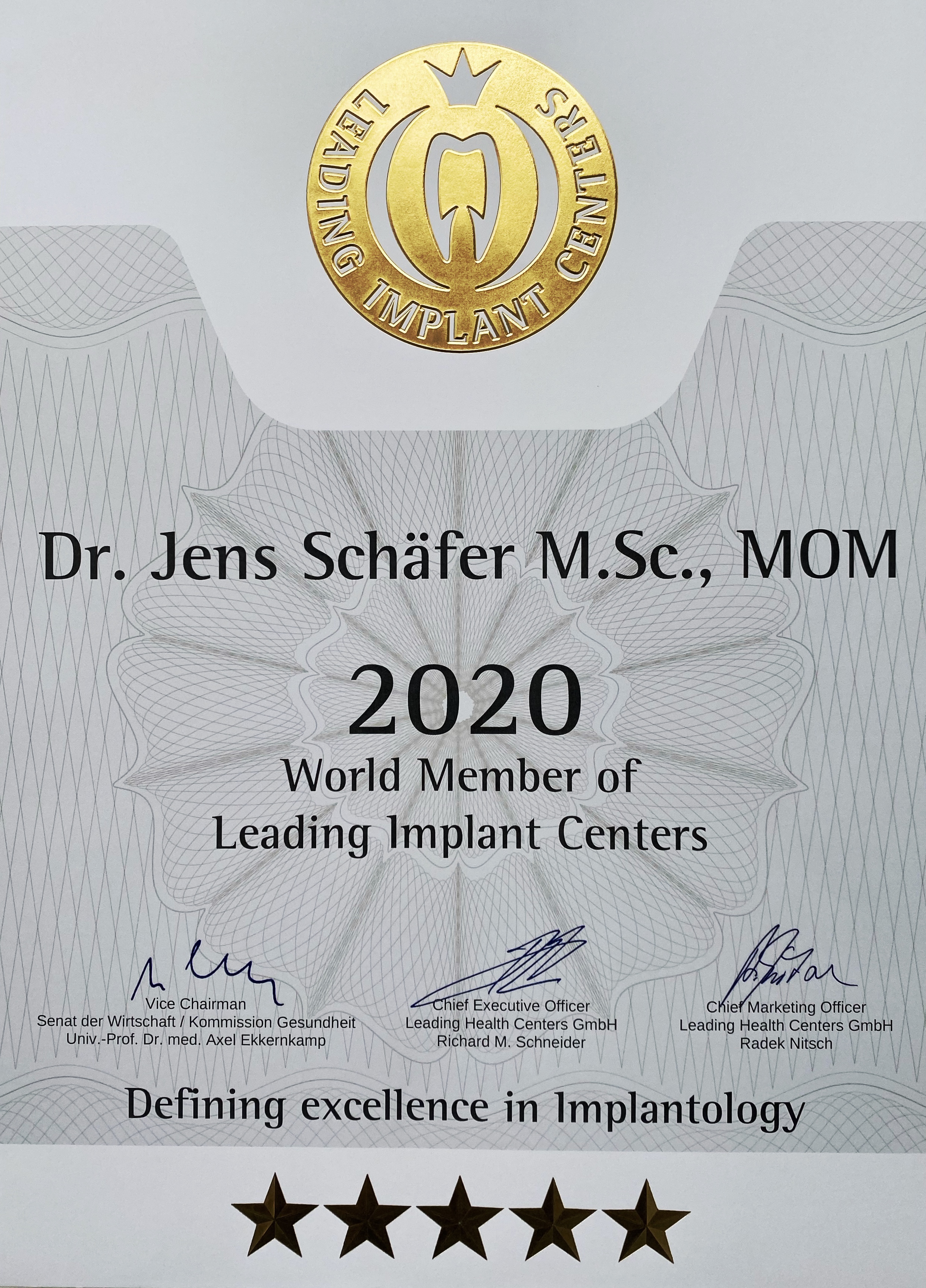 Wir sind sehr stolz nun zu den Leading Implant Centers zu gehören. Voraussetzung zur Aufnahme sind mindestens 600 dokumentierte Implantatfälle und mindestens 200 durchgeführte Operationen pro Jahr.